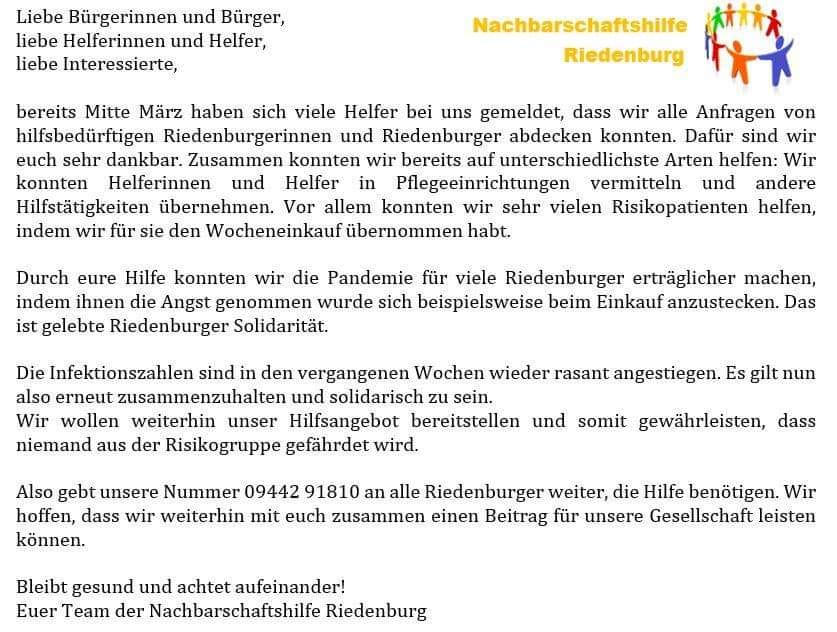 Ein großes Dankeschön an das gesamte Team der Nachbarschaftshilfe Riedenburg. Ihr leistet wertvolle Arbeit für Riedenburg.